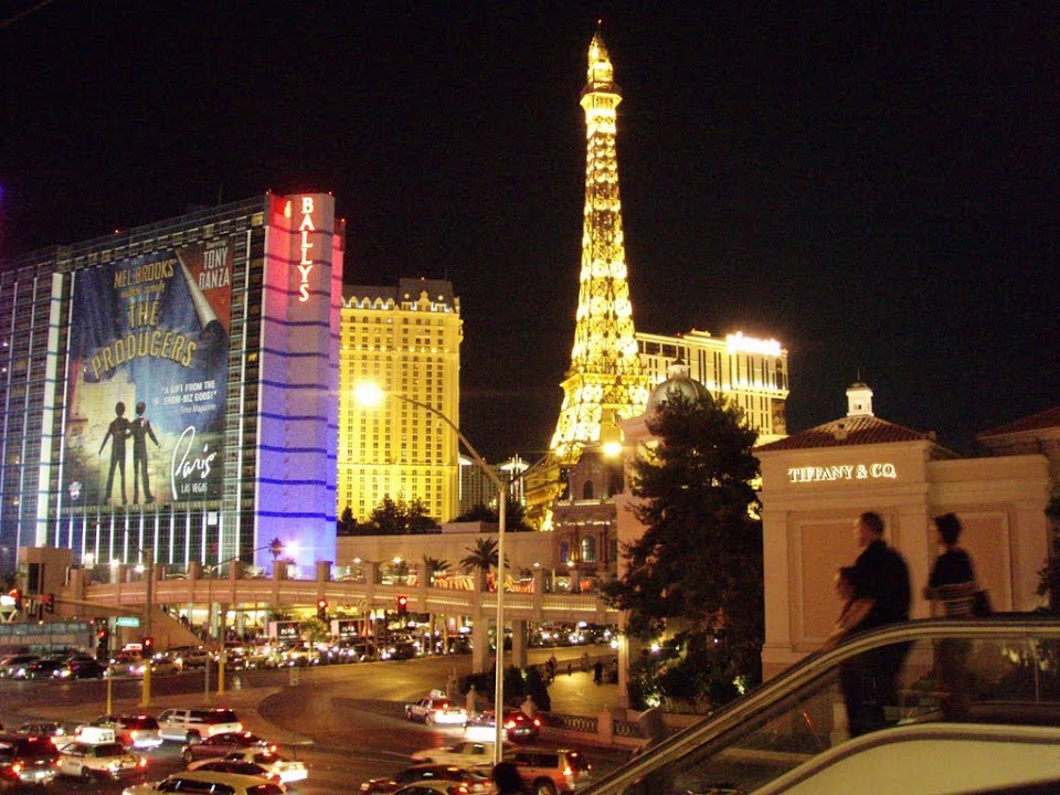 Passing through the bars of Excalibur (dated castle design) and New York, New York (mini Statue of Liberty, Chrysler building and Brooklyn bridge) we ended up at the Luxor, shaped like a pyramid. Here we started on the table games, easing ourselves in with the Wheel of Fortune before moving on to roulette. Luck wasn’t on our side here so we hopped in a cab and drove past the MGM Grand to the Paris which turned out to be my favourite casino. The outside had replicas of the Eiffel Tower and Montpellier’s Balloon, whilst the inside appeared to be an open air Parisian street. Live music played in the background as we continued on our gambling spree.