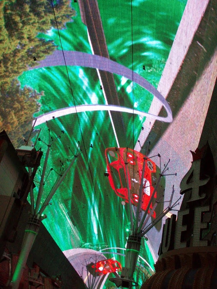 The Fremont Street Experience light show was good, but not quite as amazing or long as I’d imagined. It only ran for a few minutes at dusk, so we had time for our first look round a casino. The old strip casinos are definitely not a patch on the newer ones, and seemed to be inhabited by ailing pensioners, most of whom were carrying round oxygen tanks on the back of their wheelchairs, to keep them playing on the slot machines.