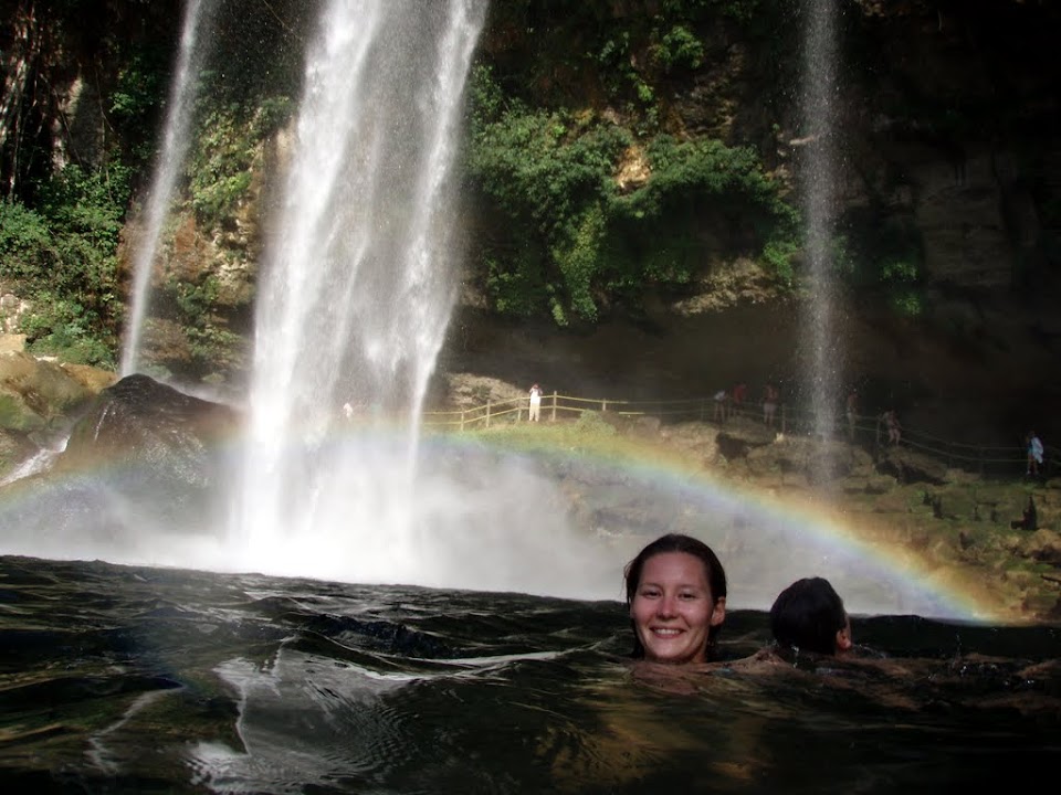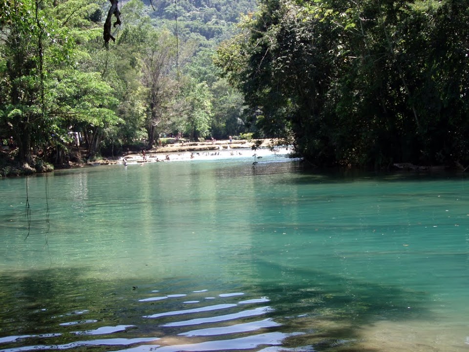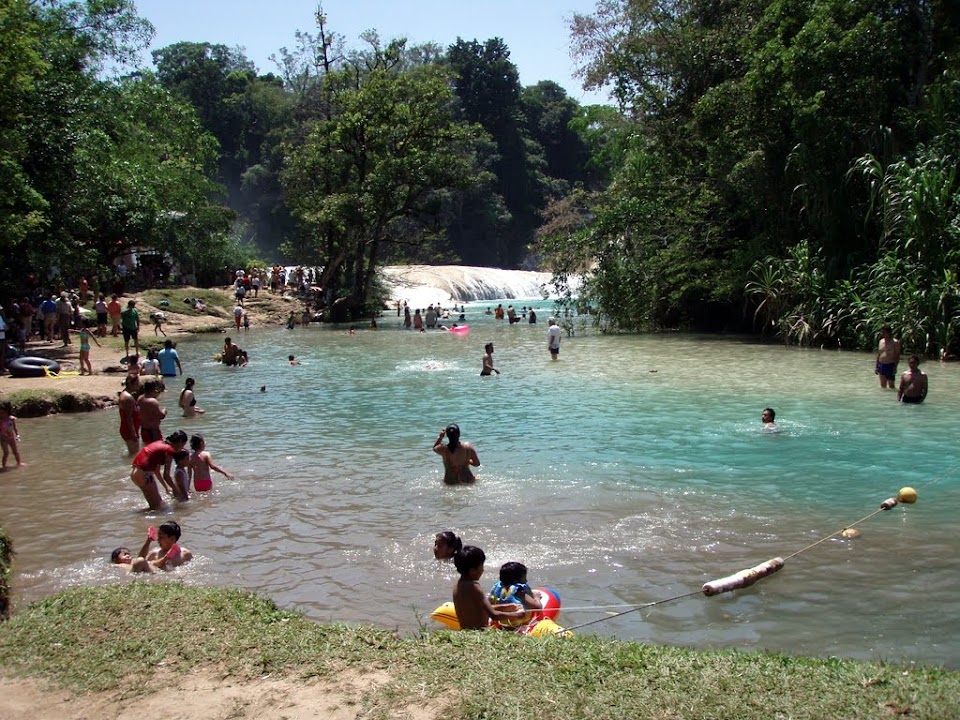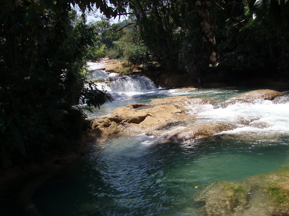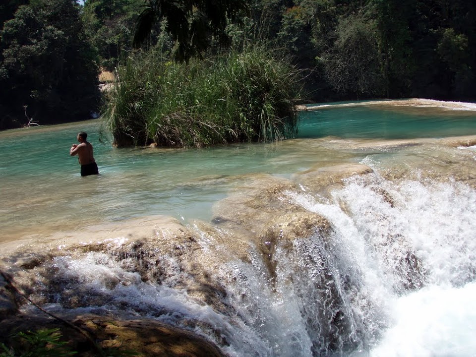 On our way back through the Mayan highlands towards Mexico we stopped at an innocuous looking muddy drive which took us up to Agua Azul, a stunning series of waterfalls and lakes containing clear blue water. The day was particularly hot and the opportunity to splash about couldn’t be missed.
