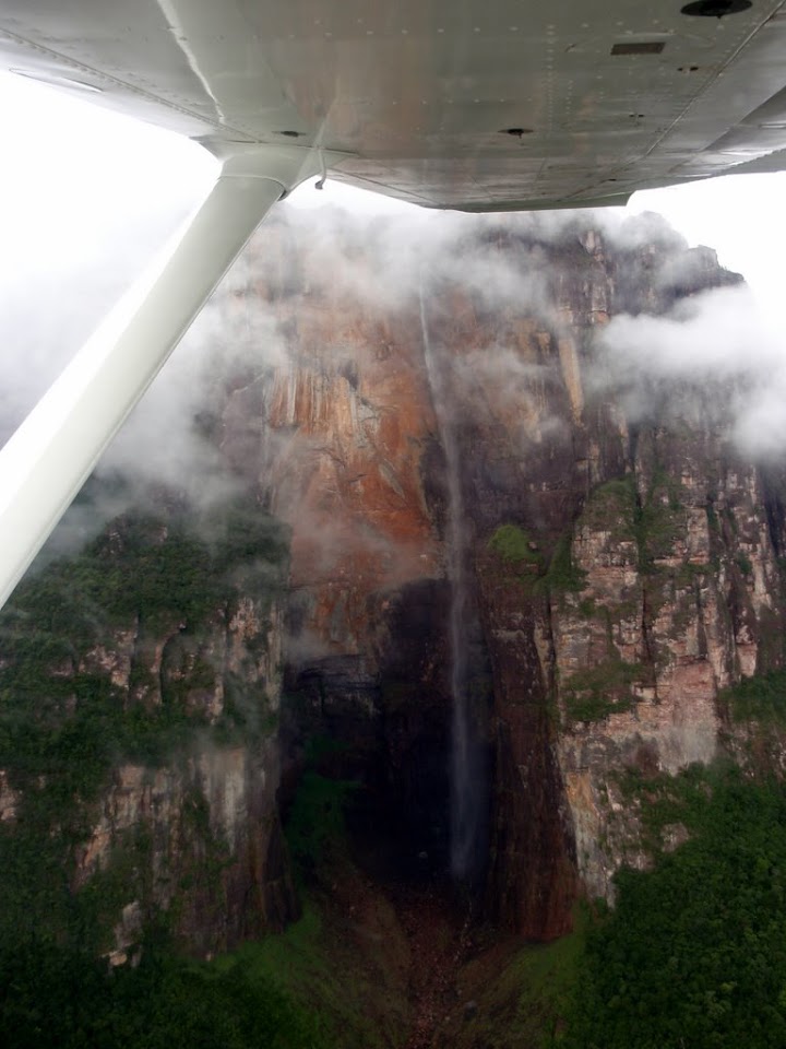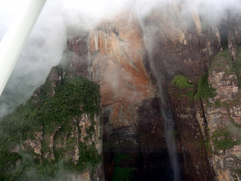 Our crazy pilot gave us the best ride, flying most of the way there skimming just above the water, below the tops of the trees. Once we got to the falls the weather opened up and he continued the crazy streak flying closer to the water dropping 800m down the side of Auyantepui, or the Devil’s Mountain, than any of the other planes.