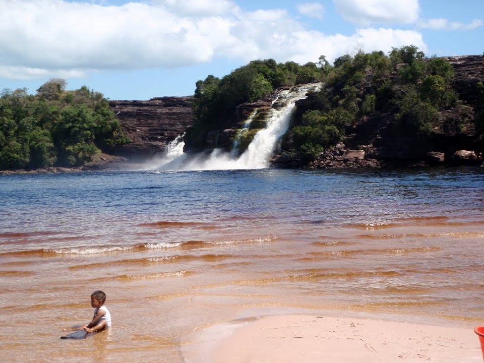 Canaima is a sleepy hamlet with a very little to do but enjoy the sweeping arc of a beach bordered by a large waterfall. The lagoon is warm and confusingly beer-coloured which gave everyone a nice looking tan through the clear waters.