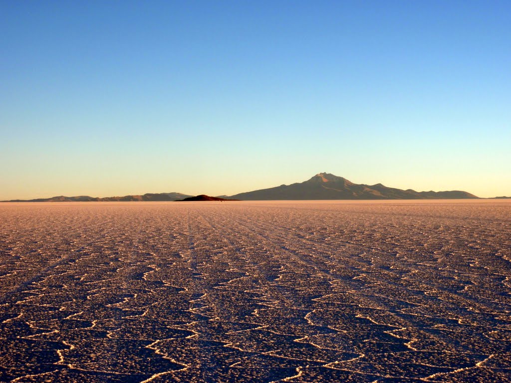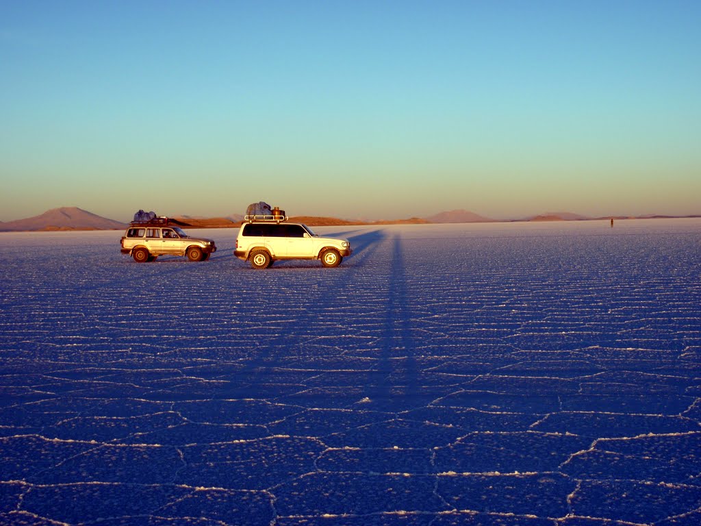 As the rising sun turned the mountains red, the skies pink and the salt a vivid blue, the extent of the salt flats was revealed and it was definitely worth a photo stop.