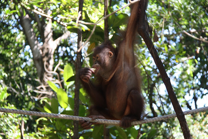 As soon as the food was brought out the orangutans descended from the trees and competed with the monkeys for the food. All in all it was good fun, and according to one family who’d tried both, the small group made it a far more laid back experience than Sepilok.
