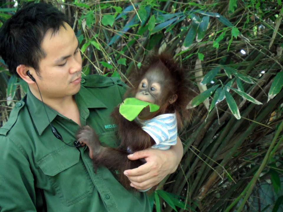 Is that the ranger carrying the baby orangutan? Did you managed to get that close to the orangutans?