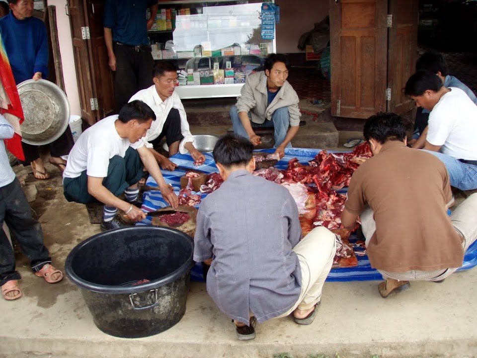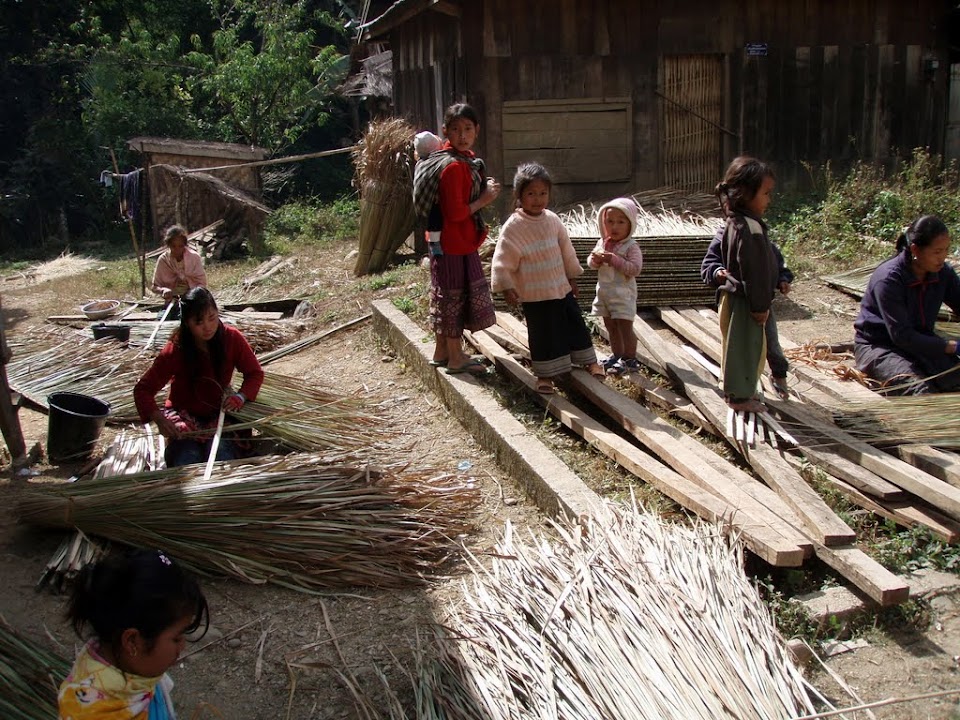 Today was the first of the long bus rides, this one 6 hours. Fortunately there was some great scenery to distract us and some frequent stops in villages along the way. One of the villages seemed quite odd, with people in tattered clothes making roof thatching for their house, overshadowed by a huge and very modern looking TV satellite dish.