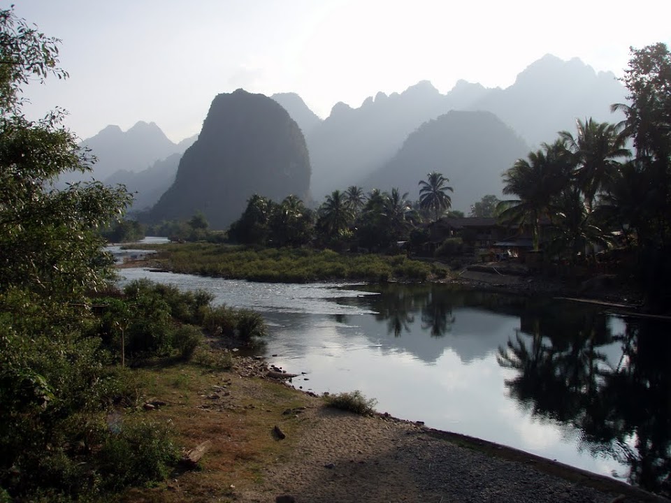 The long journey was quickly forgotten when we arrived at the Elephant Crossing hotel in Vang Vieng we had a great hotel room with balcony and a sundeck overlooking the river where plenty of sundowners were consumed whilst planning the next day.
