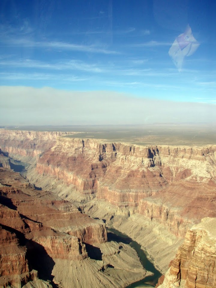 The next day, with people still sulking about their self inflicted loss we set off on a long hike of the rim of the canyon, before going back to the aerodrome for a 45min helicopter flight. This took us round the far side of the canyon to get a better view of the rivers that shaped it, and even over the still burning forest fires.