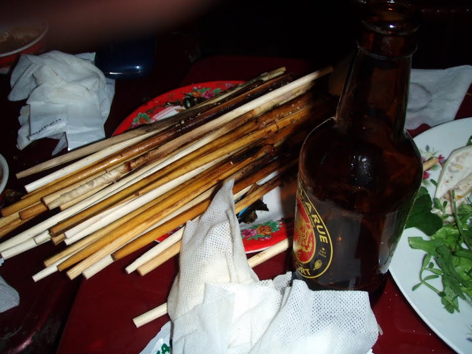 Straight away went for an excellent meal down a little back alley where the ladies showed us how to make rolls from a combination of pork or beef skewers, 3 types of salad and either rice paper or rice omelettes. Then they force fed them to us, pushing their fingers into our mouths and pouring beer down our necks. I was happy, but a few of the others looked a bit put out.