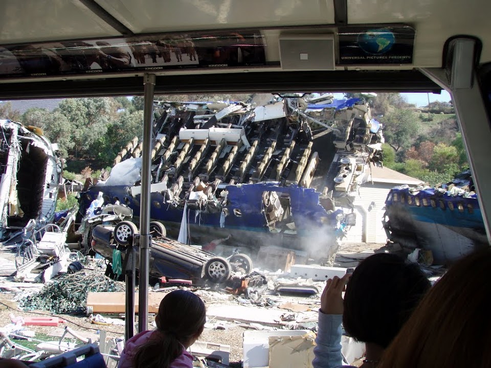 Jurassic Park with the lights out, and the studio tour bus was particularly good in the evening, with the War of the Worlds plane crash set being inhabited by zombies, and the Bates Motel Psycho set really came into its own.