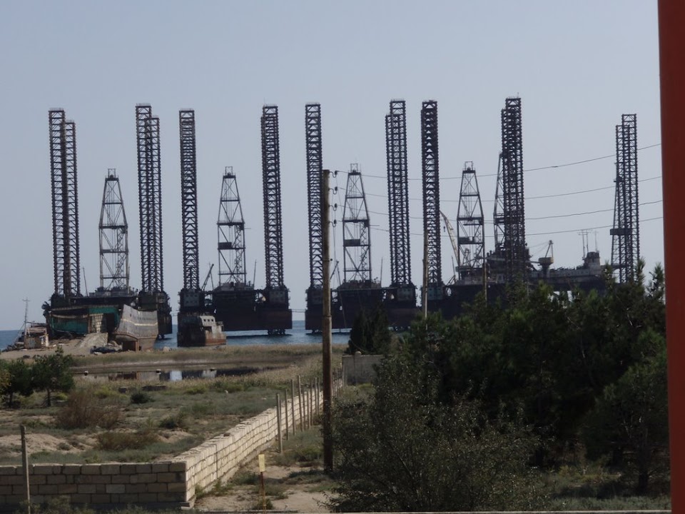 Having driven past a huge assembly plant for oil rigs we also visited an area of ground where the natural gas still burns right next to a childrens playground, but the Health & Safely inspectors don’t seem too bothered.