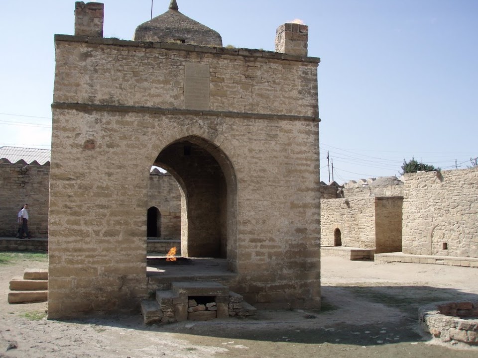A fun couple of days. The first day we visited a Zoroastrian fire temple, where worshippers would travel from all over Central Asia to see the rocks that burnt all day and night. This occurred as the natural gas escaping from the vast underground reserves caught fire and burnt uninterrupted. It seems the vast reserves have finally run out as we arrived at 8.55am, just before the museum opened and were able to see the chap turning on the piped-in gas and lighting the flames…