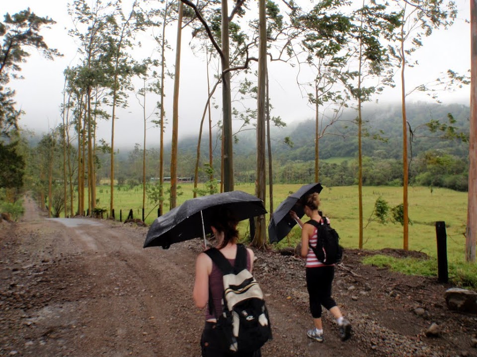 With our confidence and energy level boosted by a leisurely local breakfast of Gallo Pinto (mixed rice and beans), with plantain, sour cream and eggs, followed by toast with lemon jam we (well the schoolteachers who hadn’t been working on a building site all week…) decided on a hike up the volcano. We stopped in at the supermarket to stock up on drinks and snacks and got a taxi out to the Arenal National Park. Unfortunately the taxi driver decided to drop us at the outer gate rather than the inner gate which was a whole 7km farther up the road. With not much choice of transportation we set off to walk to the inner gate up the steep, unmade road.