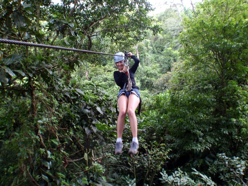 Gently awoke to the sounds of screams when one of the girls noticed a huge dead bug stuck in the ceiling fan. No idea what it was but it looked about the size of a decent sausage with wings. This at least got them out of bed a bit quicker so we could head off for a good breakfast. Having dropped two belt sizes in just the first week of digging I had decided to treat myself so went for the Super Tipico, which is every sort of Costa Rican breakfast item on a plate, plus a side order of pancakes and some chocolate milk. Feeling a bit sluggish we then wandered round the local shops, picking up a few items of clothing and booking one of the many canopy tours on offer.