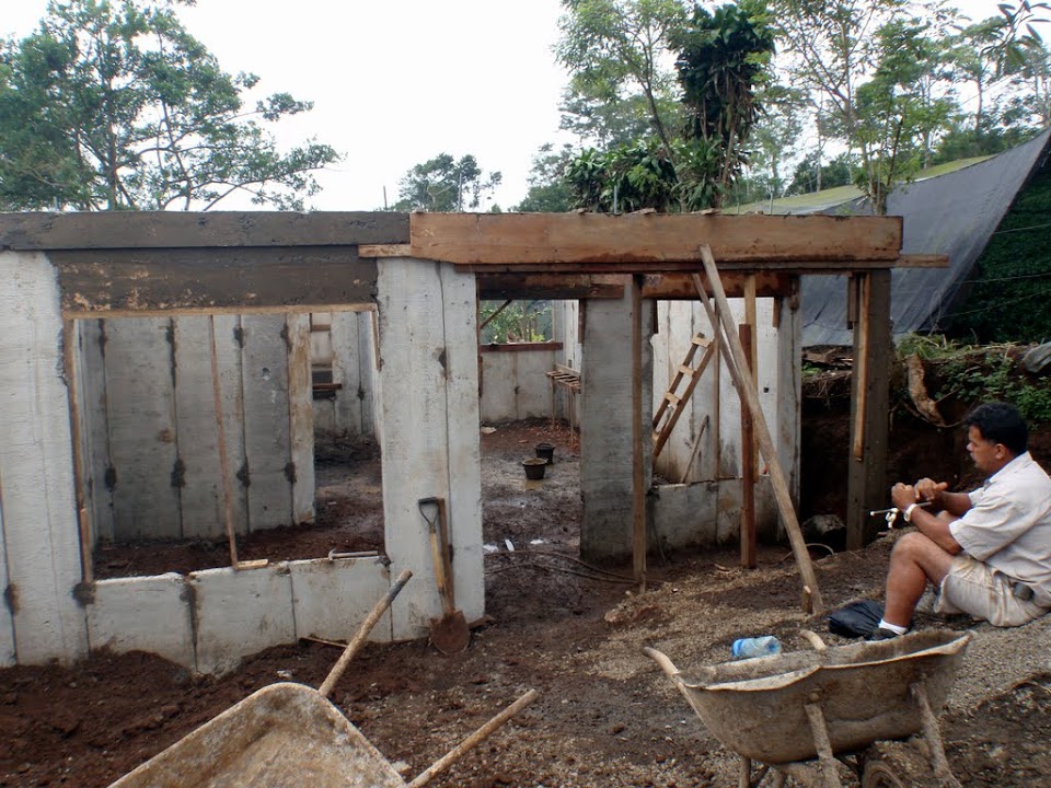 - Took up a number of the old 8 inch thick concrete floors with a pickaxe and no skill (or goggles – Health & Safety doesn’t exist here)