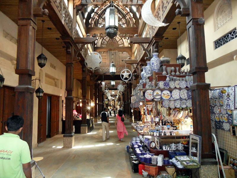 We drove around a number of the city’s main sights, such as the Sheik’s Palaces before stopping at the Dubai Museum. Over the years I’ve become quite tired of most museums, but this one is definitely worth a visit – it covers the history of Dubai throughout the ages and the peoples who have lived in the region. It’s set in an old mud brick fort and has excellent dioramas and descriptions surrounding a main courtyard filled with preserved boats and buildings.