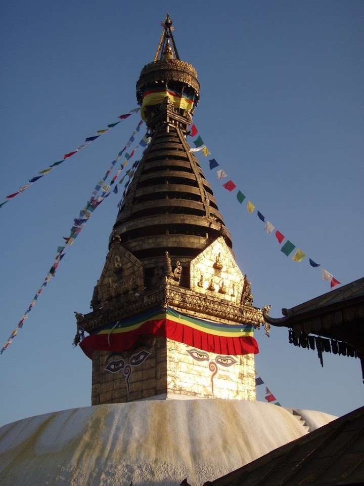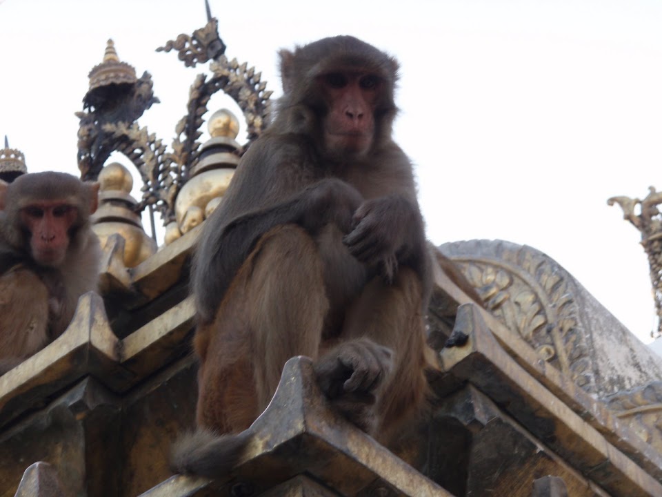 Following a walk down Freak Street, the old hippy hangout, we had a drink on a rooftop cafe overlooking Durbar Square before walking back to the hotel to move my bags to another hotel. This turned out to be a restored palace so we sat by the pool for a couple of hours before jumping in a cab to visit the Monkey Temple (Swayambhunath) and snack on deep fried yak cheese.