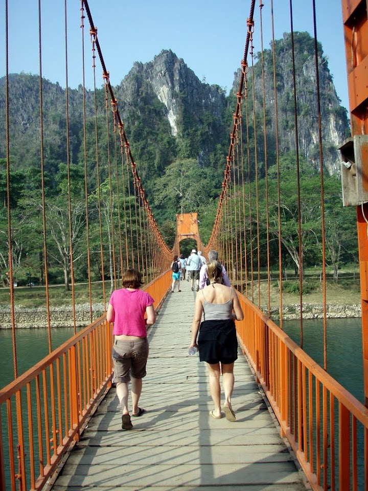 From Vang Vieng we wandered a short way down the river to some caves, supposedly inhabited by a hermit who in an effort to discourage visitors had built his home at the top of 147 steps*. (* I know there are 147 steps as two of us counted on the way up before turning round and realising the steps had successfully discouraged the rest of the girls). In doing so he’d created quite the tourist attraction so had a steady stream of camera toting guests.