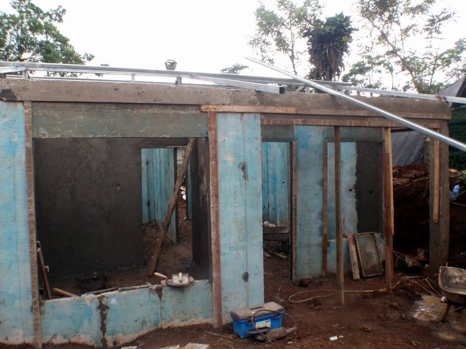 Improving fitness and a few decent nights of sleep have made all the difference – Monday I managed to work solidly for 7 hours without too much bother. I spent the morning digging gravel out of a pit in the ground and using it to line the floors of the house, ready for concreting. The afternoon was spent digging out a path alongside the house so we could still get from the front to the back whilst the floors are drying. Throughout this a new chap had turned up. He looked quite European, but didn’t have any eyebrows or eyelashes, which was explained when he turned out to be the welder. He spent the day building the metal frame for the roof, so the house now looks considerably more like a house.