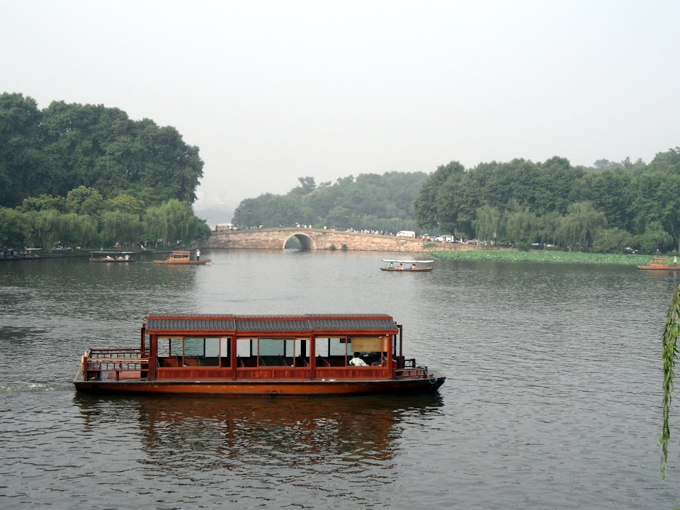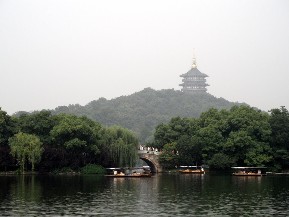 [wp_geo_map]Hangzhou’s main attraction is the freshwater West Lake. Taking about 5 hours to walk around in its entirety it is divided up by a couple of causeways and overlooked by the Leifeng Pagoda which dates back to 975 AD. We walked through the crowds but couldn’t get on any of the small boats that criss-cross the lake due to the holiday crowds. The lake has 10 famous scenes, and I think we saw as many of them as is possible at this time of year: