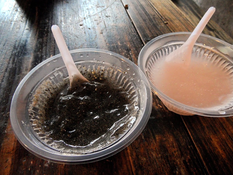 By way of dessert we stopped for some traditional sesame paste and got so much attention for eating random things we got a free lotus root paste thrown in. Ground black sesame has boiling water added and makes a gloopy black bowl which is eaten with a tiny plastic spoon.
