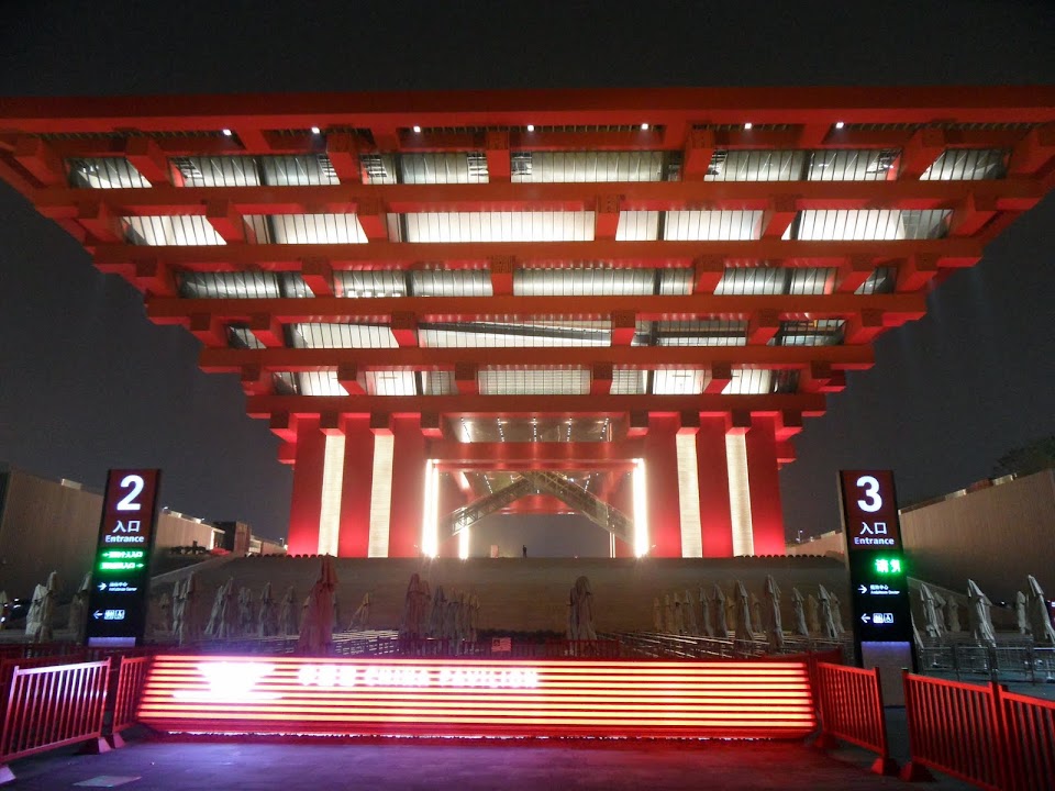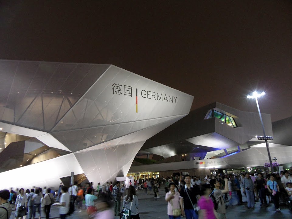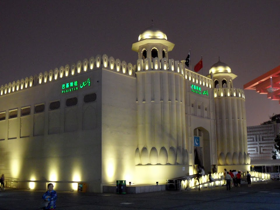 We wandered round pretty much the same route, but looking at the pavilions at night. Some were even more impressive lit up in the darkness such as the Russian and Saudi Arabia pavilions; make to look like a castle and oil tanker respectively, but the drab and angular USA and German pavilions were equally dull by day or night.
